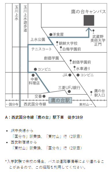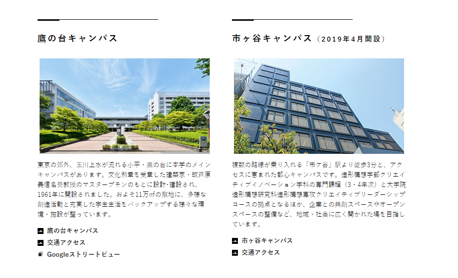 因此又重新查找,最后在官网是才发现有两个校区,一个是鹰之台校区,另一个是市谷校区,细看了一下设计类和大学院是位于鹰之台校区,而娜娜敏学的是室内空间设计,所以应该是鹰之台校区没错。碍于不放心,又去问了一下之前巡礼过的聚聚,确定了就是位于小平市的鹰之台校区。