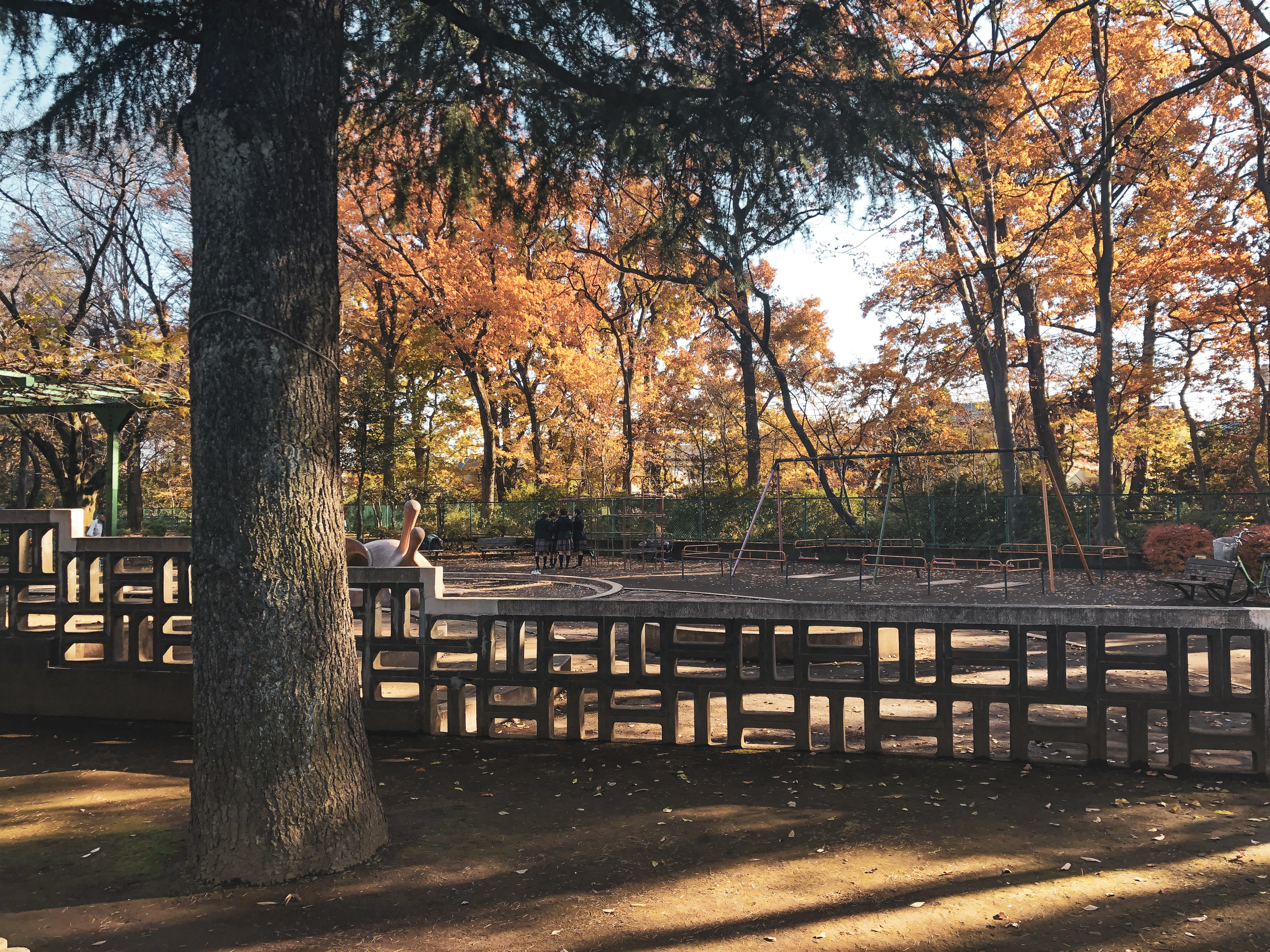 下了车,已全然不见东京高耸的建筑与川流交错的车道,只有非常日式平淡的市井小道。车站下来没几步路看到了一家松屋,心想等巡礼完正好来这儿吃个午饭。路上有蛮多学生的,一下就让我感到了一种怀念的校园味道。街道很小,循着地图走着,走至需要过马路的时候,碰巧对面是一家全家便利店,还挺大。经过全家后右转,是一条非常美丽的林溪小路。选择了靠右侧的小路走了下去,路上有充满活力的中学生们,有漫步的老人,这天风挺大的,秋叶被哗哗地吹落下来,真的是非常美丽。原本还以为这条路很短,走下去才发现意外的长。 走了大概有7分钟的样子,确实是非常想让人驻足的空间。