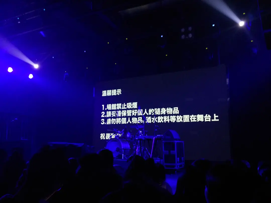 会场内不允许自带酒水,大家都拿了出来。我除了手机啥也没带,一生自在XD。入场时staff在每个人左手背盖了个MAO的红章,可能是为了标记已经检过票了吧。小小的LIVE House里面也有卫生间,排队把我憋的,不管有没有好位子先去方便了。
