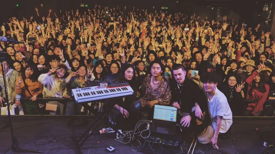 吉他手大秀中文,很活泼,我后面的妹子们夸他可爱XD。主唱偶尔撩发,一旁的小迷妹就尖叫道:我要死了啊啊啊😄。bass手一缕黑长发,在右侧很安静地演奏着,没咋说话,有点腼腆的感觉😌。